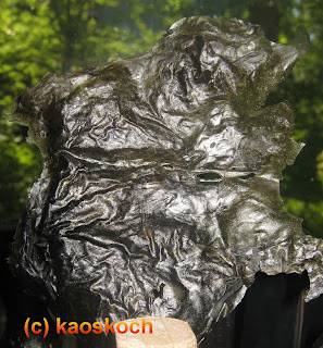 Beide Bögen mit der Kleistermasse der Brennnesselmasse werden kräftig gesalzen, damit das Zeugs nach was schmeckt und kommen für einige Stunden bei 60 Grad Umluft in den Backofen. Ofentür leicht geöffnet lassen. Wenn die Masse getrocknet ist, in Stücke brechen und damit machen, was auch immer Du willst. Wie Du anschließend Deine Küche wieder sauber bekommst? Weiß ich auch nicht. Mach das Zeugs am Besten nicht in Deiner eigenen. Das ist irgendwann nämlich überall ...Und pack' nichts, was mit dem Brennnesselzeugs in Berührung kam, in die Spülmaschine zu anderem Geschirr. Schon gar nicht, wenn in der Spülmaschine feinmaschige Siebe sind. Dann haste nochma richtig Späßken ...